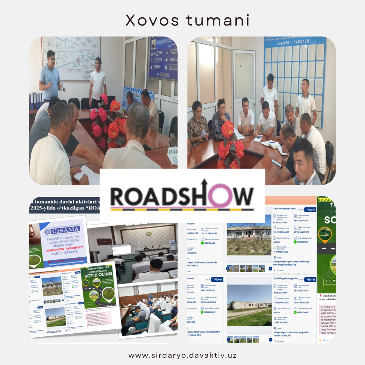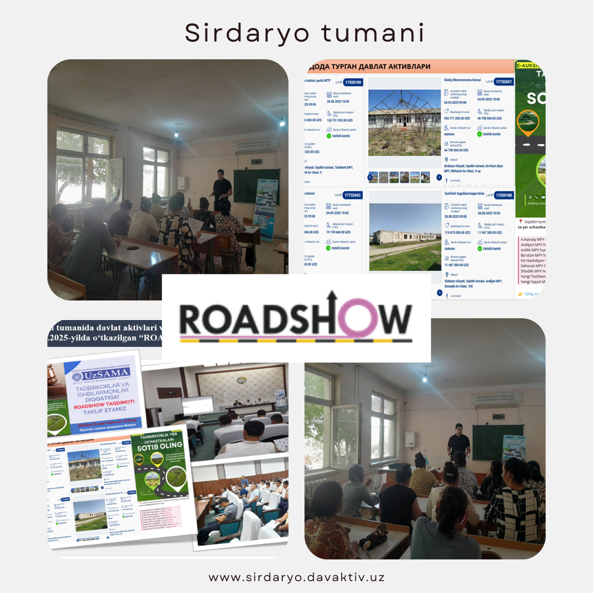 In order to explain the content of this Decree to entrepreneurs and the general public in the regions and to intensify its promotional work, on August 21-25 of this year, the territorial department of the State Assets Agency held another “Roadshow” presentation on state assets scheduled for privatization, including state shares in enterprises, vacant state-owned objects, and land plots scheduled for sale, in the Boyovut, Okoltin, Khovos, Sardoba, Syrdarya districts of the Syrdarya region and the city of Yangiyer.
