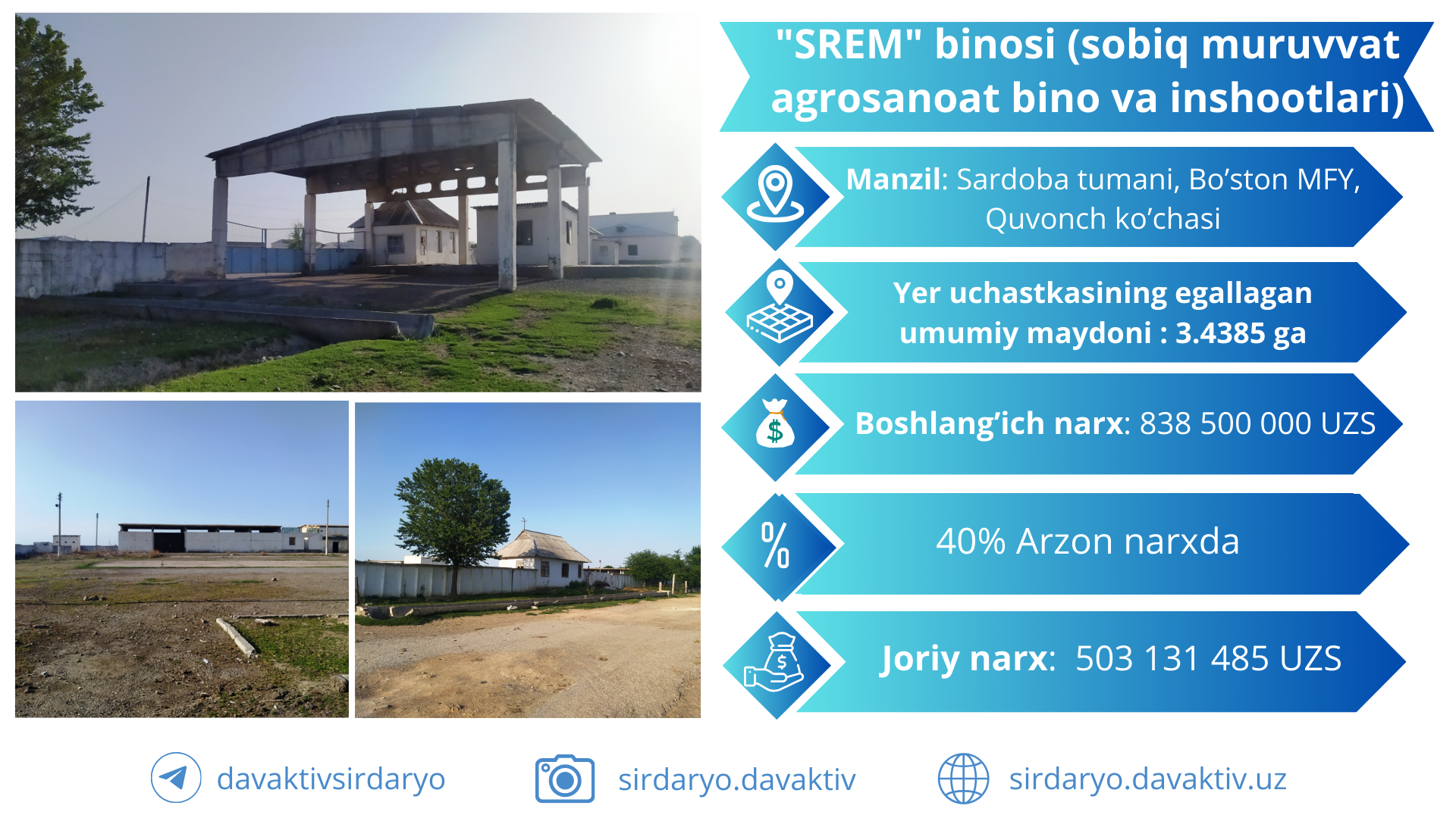 Приобретите здание «СРЭМ» (бывшие агропромышленные здания и сооружения «Мурувват…