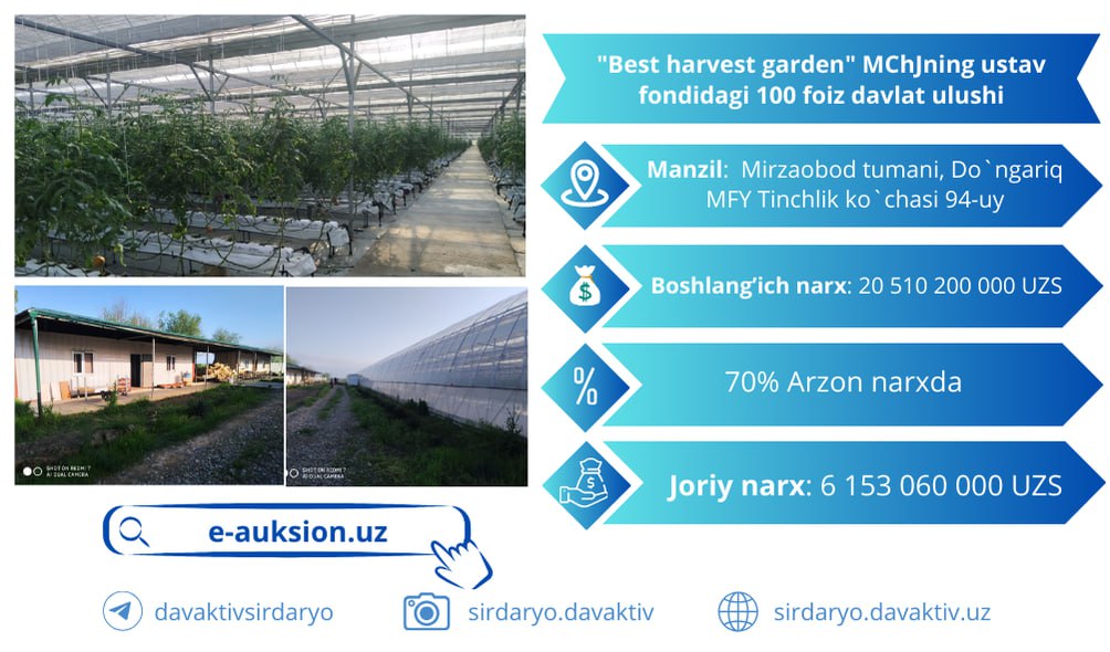 Купите 100% доли государства в уставном капитале ООО «Бест Харвест Гарден»!