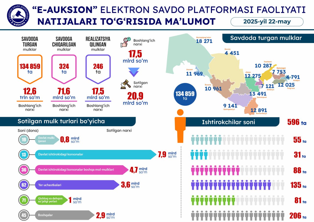 22-май санасида ўтказилган онлайн савдолар натижаси