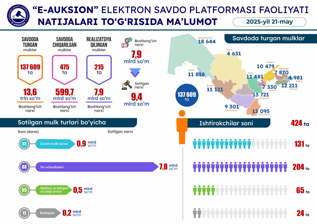 21-май санасида ўтказилган онлайн савдолар натижаси
