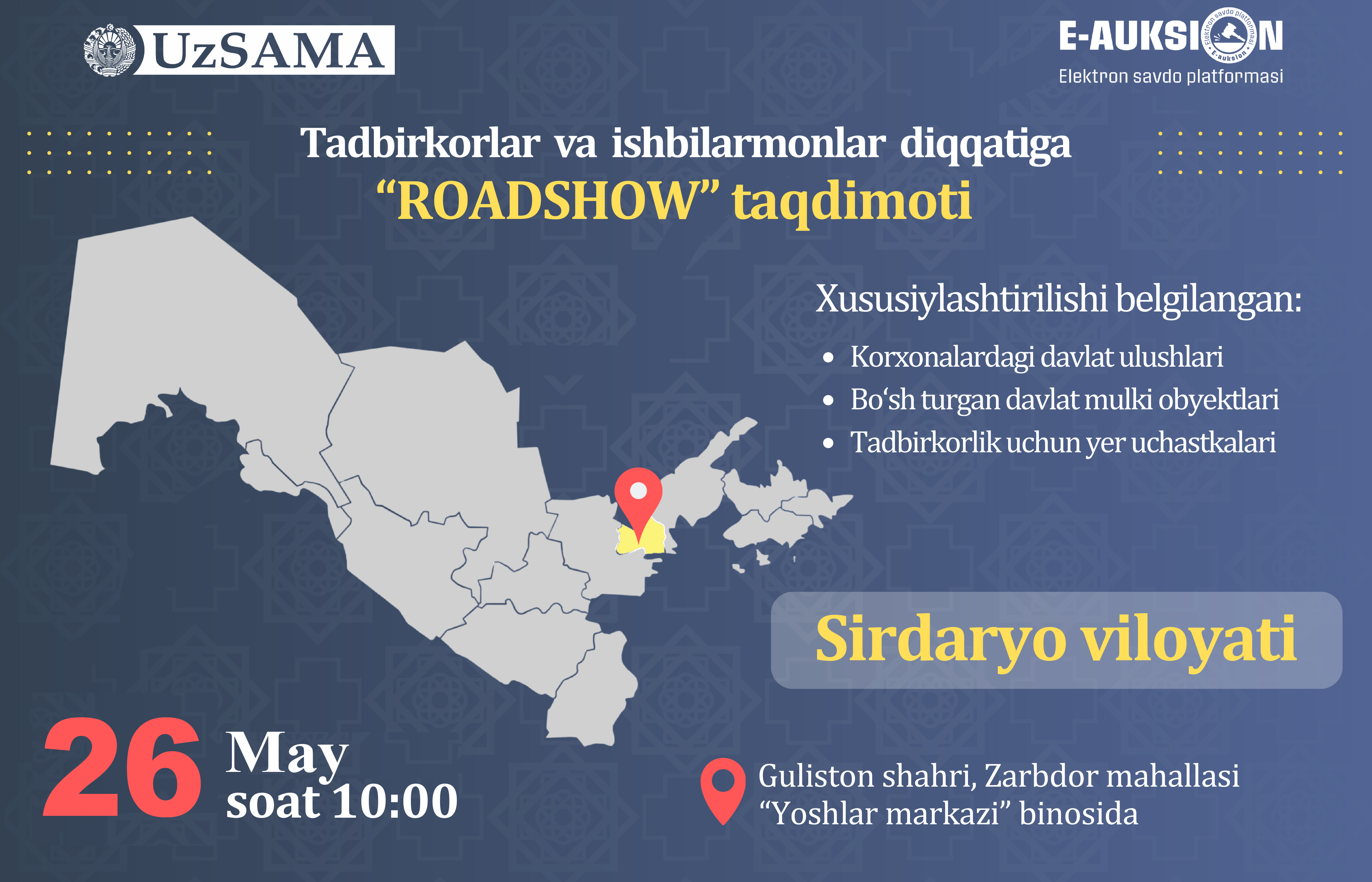 Сирдарёда давлат активларини хусусийлаштириш бўйича “Роадшоw” тақдимоти ўтказилд…