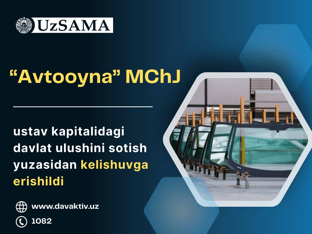 “Автоойна” МЧЖ устав капиталидаги давлат улушини хусусийлаштириш бўйича келишувг…