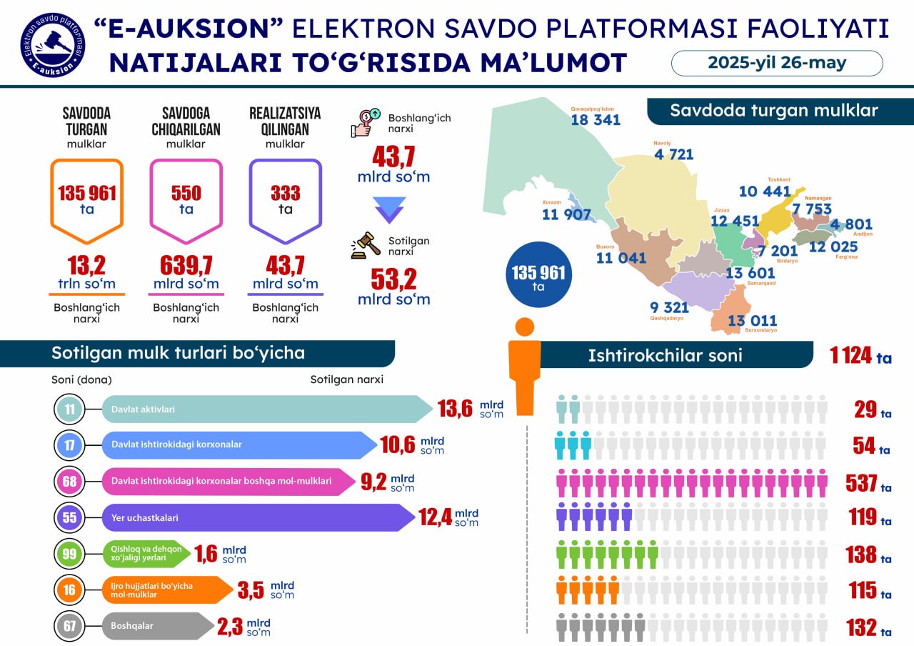 26-май санасида ўтказилган онлайн савдолар натижаси