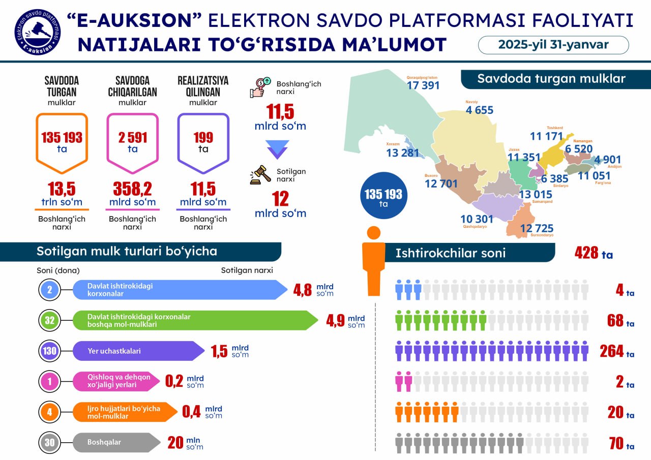 31-yanvar sanasida o'tkazilgan onlayn savdolar natijasi