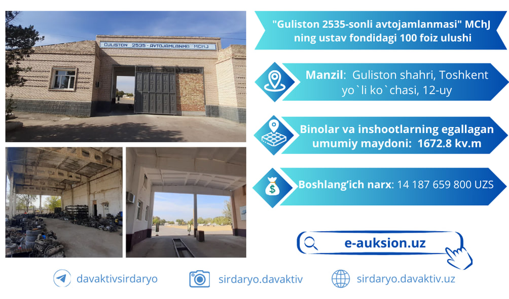 "Guliston 2535-sonli avtojamlanmasi" MChJning ustav fondidagi 100 foiz ulushini …