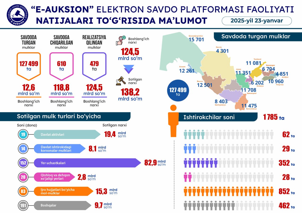 23-yanvar sanasida o'tkazilgan onlayn savdolar natijasi