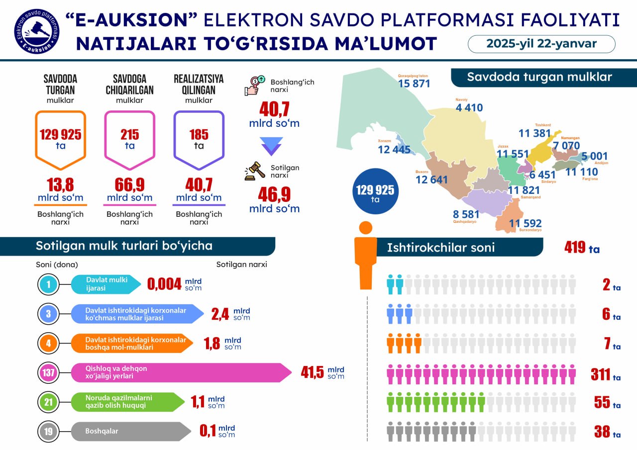 22-yanvar sanasida o'tkazilgan onlayn savdolar natijasi
