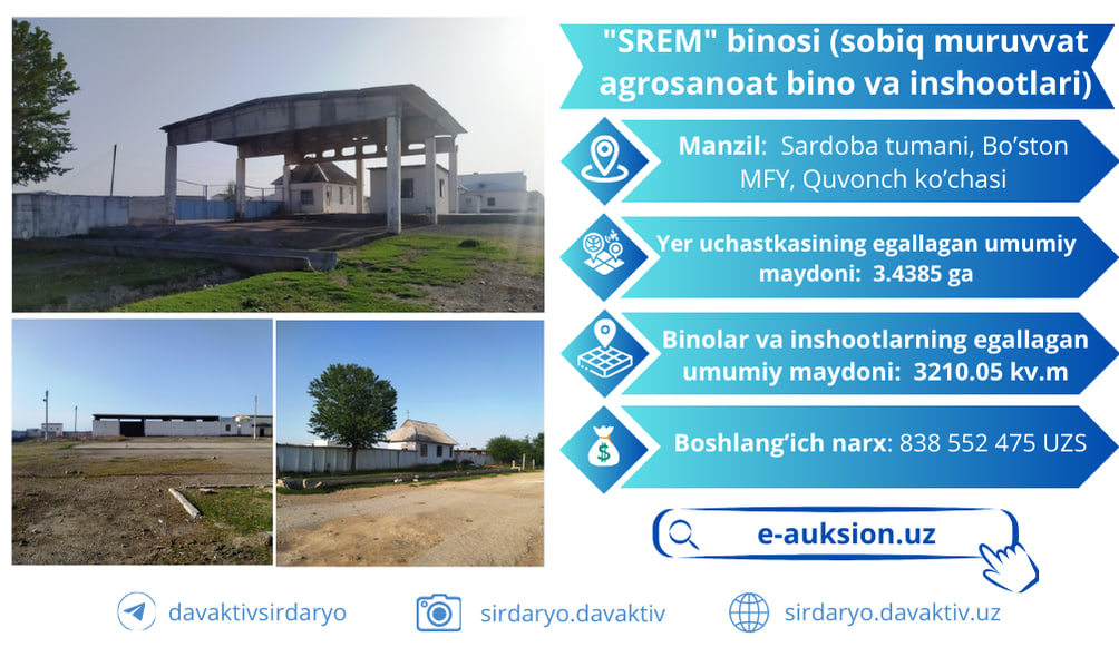 "SREM" binosi (sobiq muruvvat agrosanoat bino va inshootlari) ni e-auksion platf…