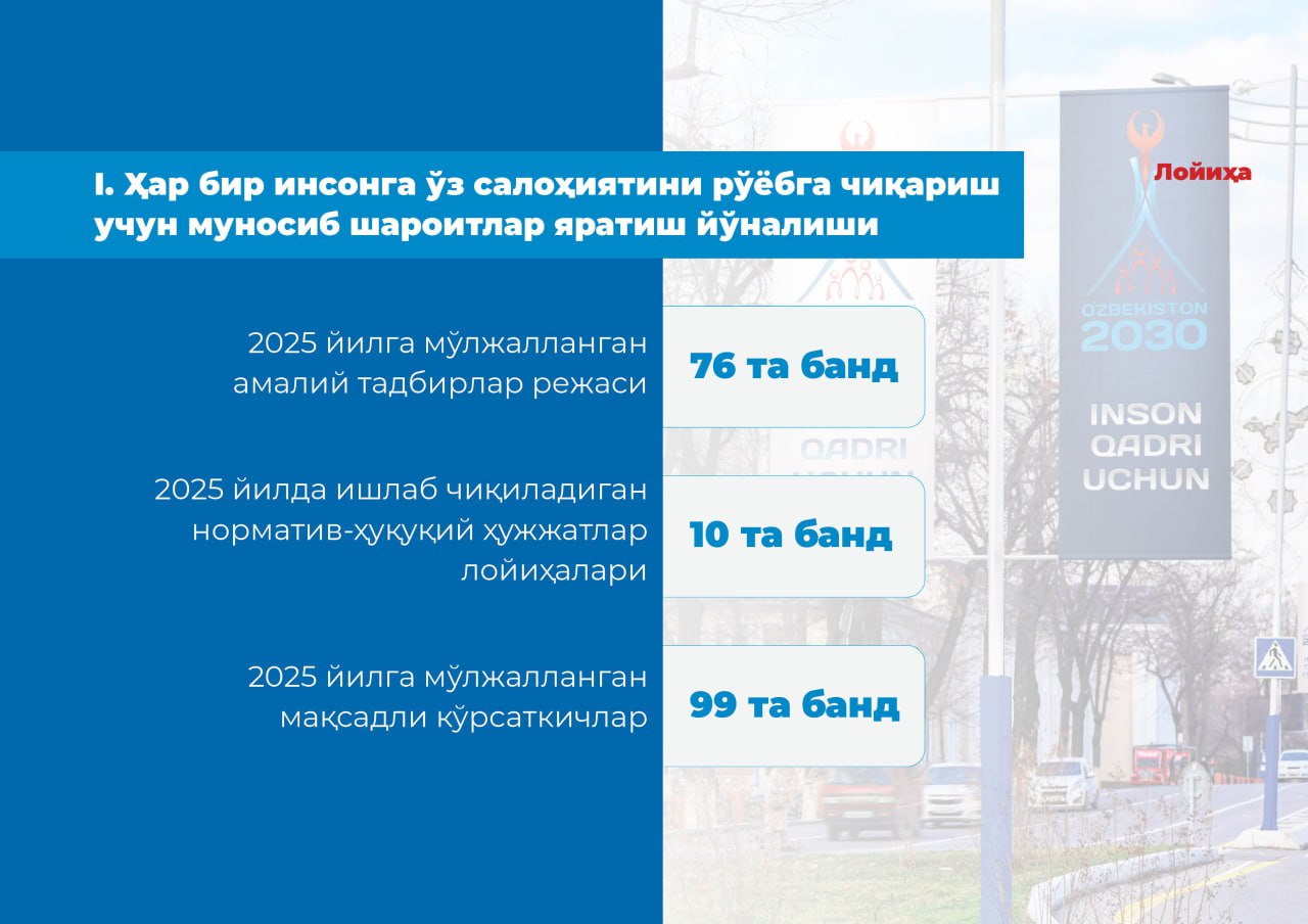 2025-yilgi Davlat dasturi loyihasining Har bir insonga oʻz salohiyatini roʻyobga…