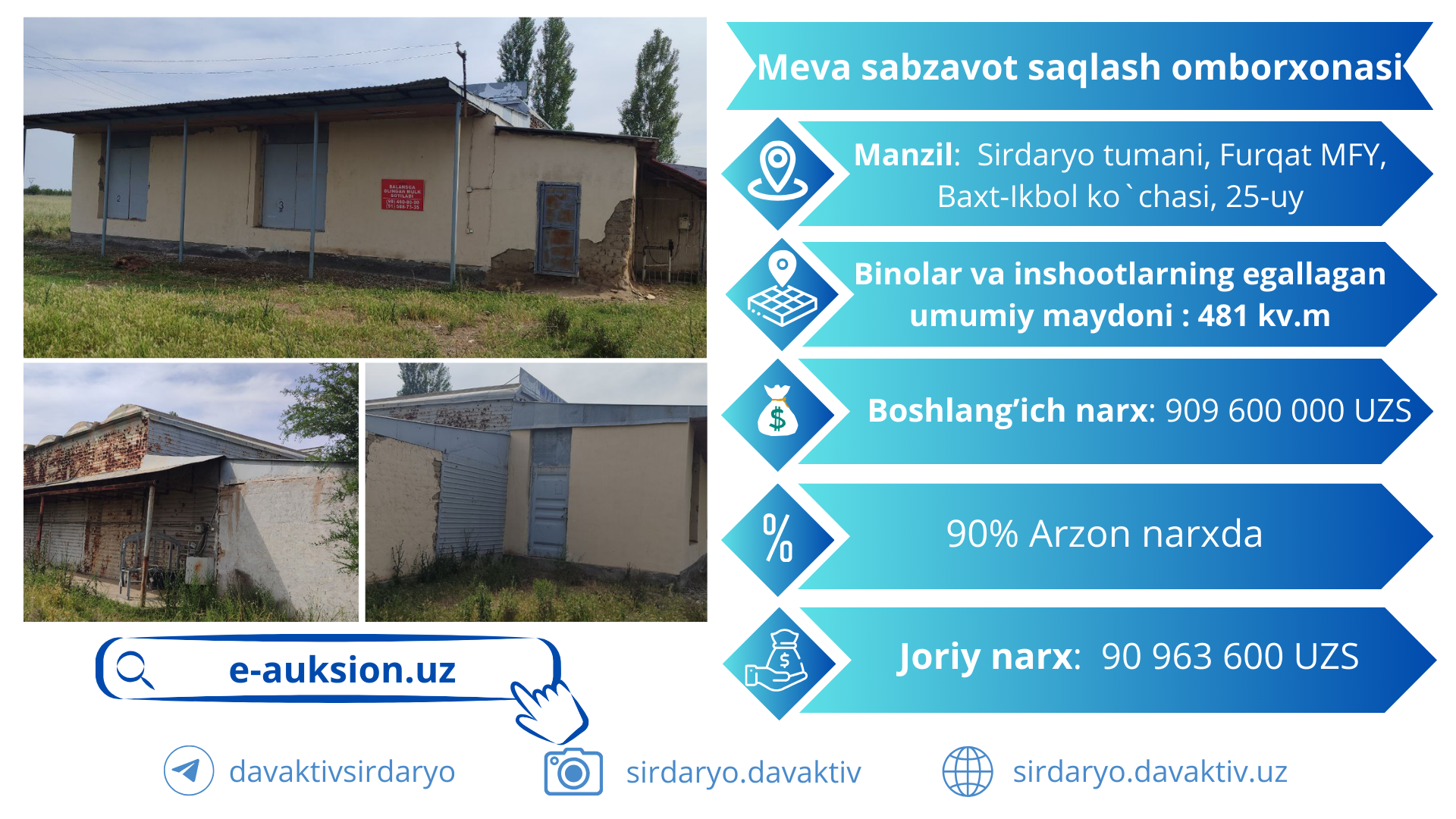 Meva sabzavot saqlash omborxonasini e-auksion platformasida 60 oy muddatli to'lo…