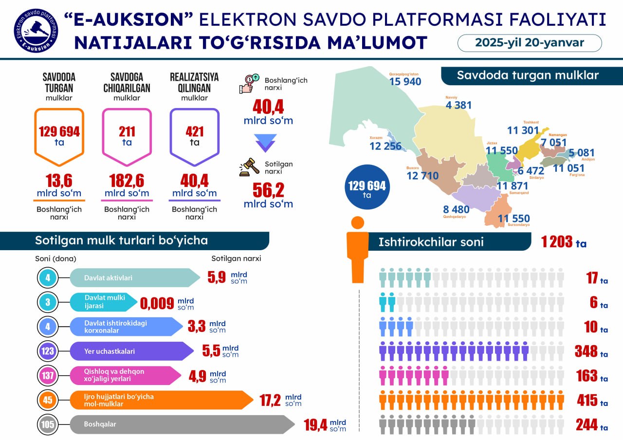 20-yanvar sanasida o'tkazilgan onlayn savdolar natijasi