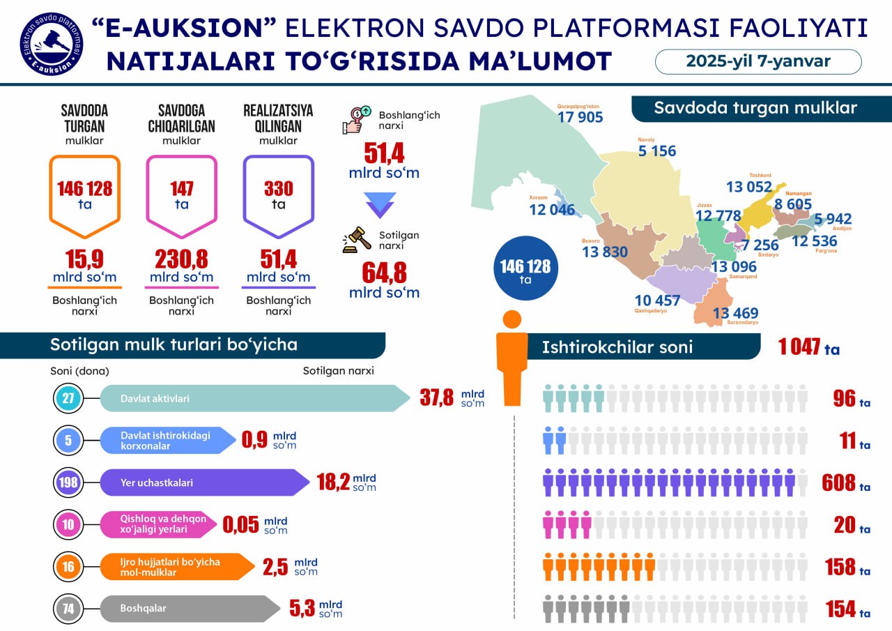 7-yanvar sanasida o'tkazilgan onlayn savdolar natijasi