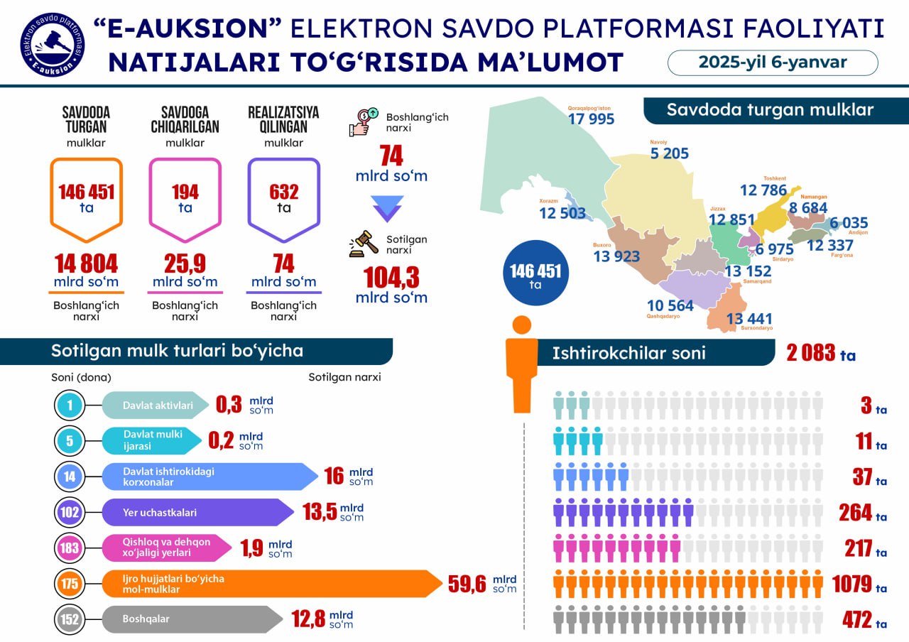 6-yanvar sanasida o'tkazilgan onlayn savdolar natijasi