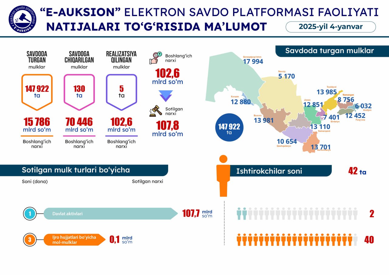 4-yanvar sanasida o'tkazilgan onlayn savdolar natijasi
