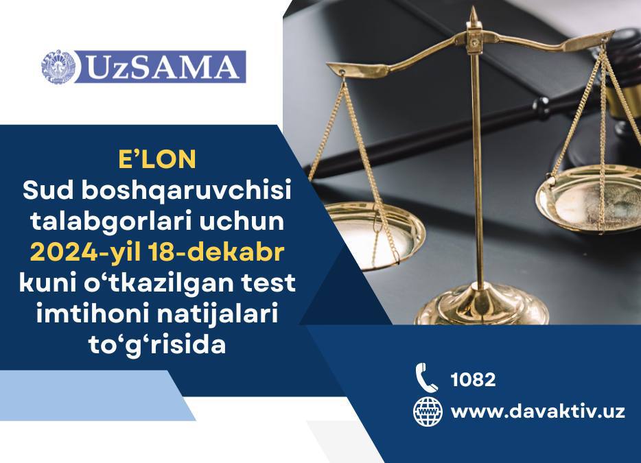Sud boshqaruvchisi talabgorlari uchun 2024-yil 18-dekabr kuni oʻtkazilgan test i…