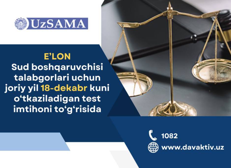 Sud boshqaruvchisi talabgorlari uchun joriy yil 18-dekabr kuni oʻtkaziladigan te…