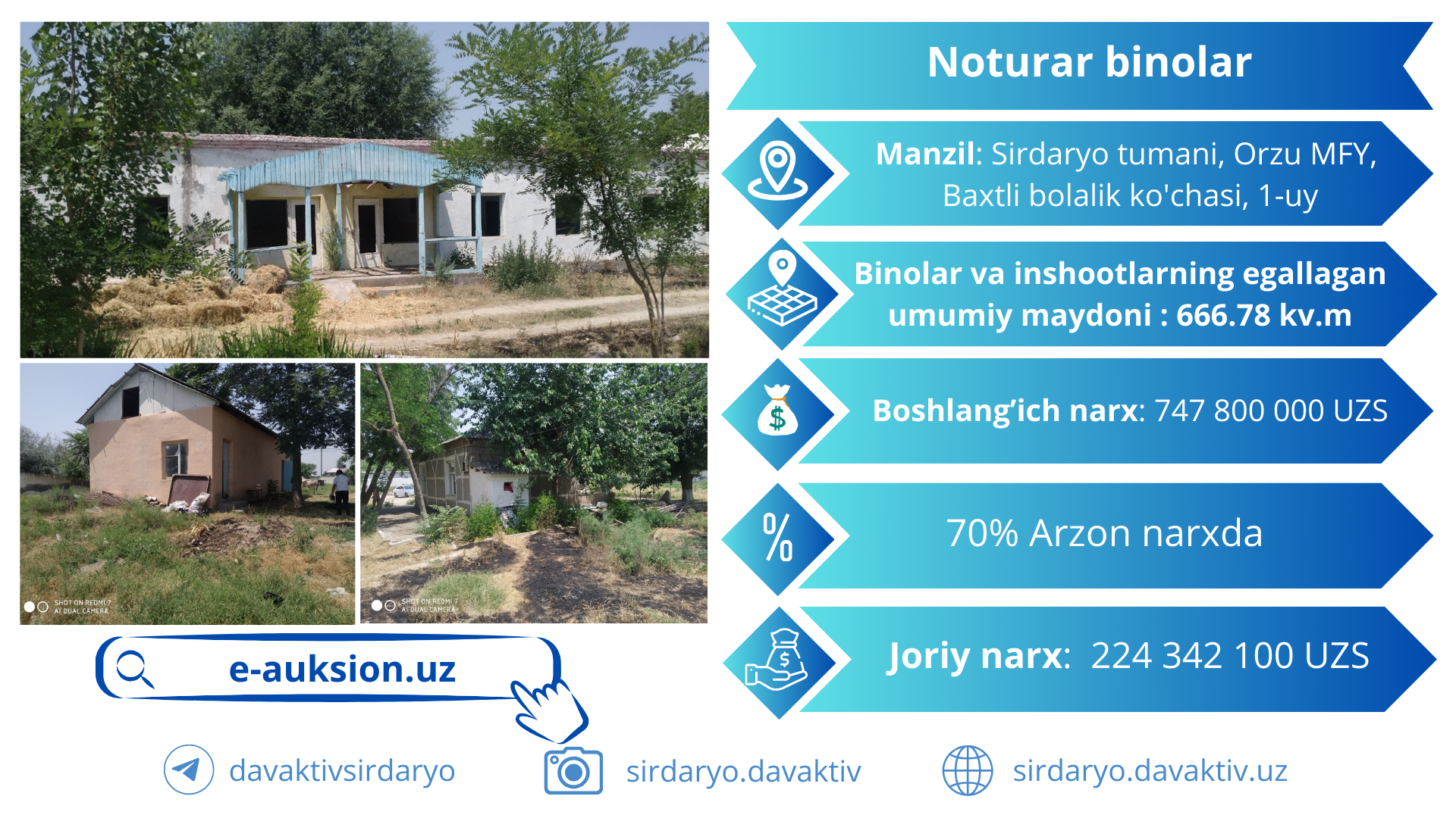 e-auksion.uz platformasi orqali Sirdaryo viloyatidagi 1302 dan ortiq koʼchma sav…
