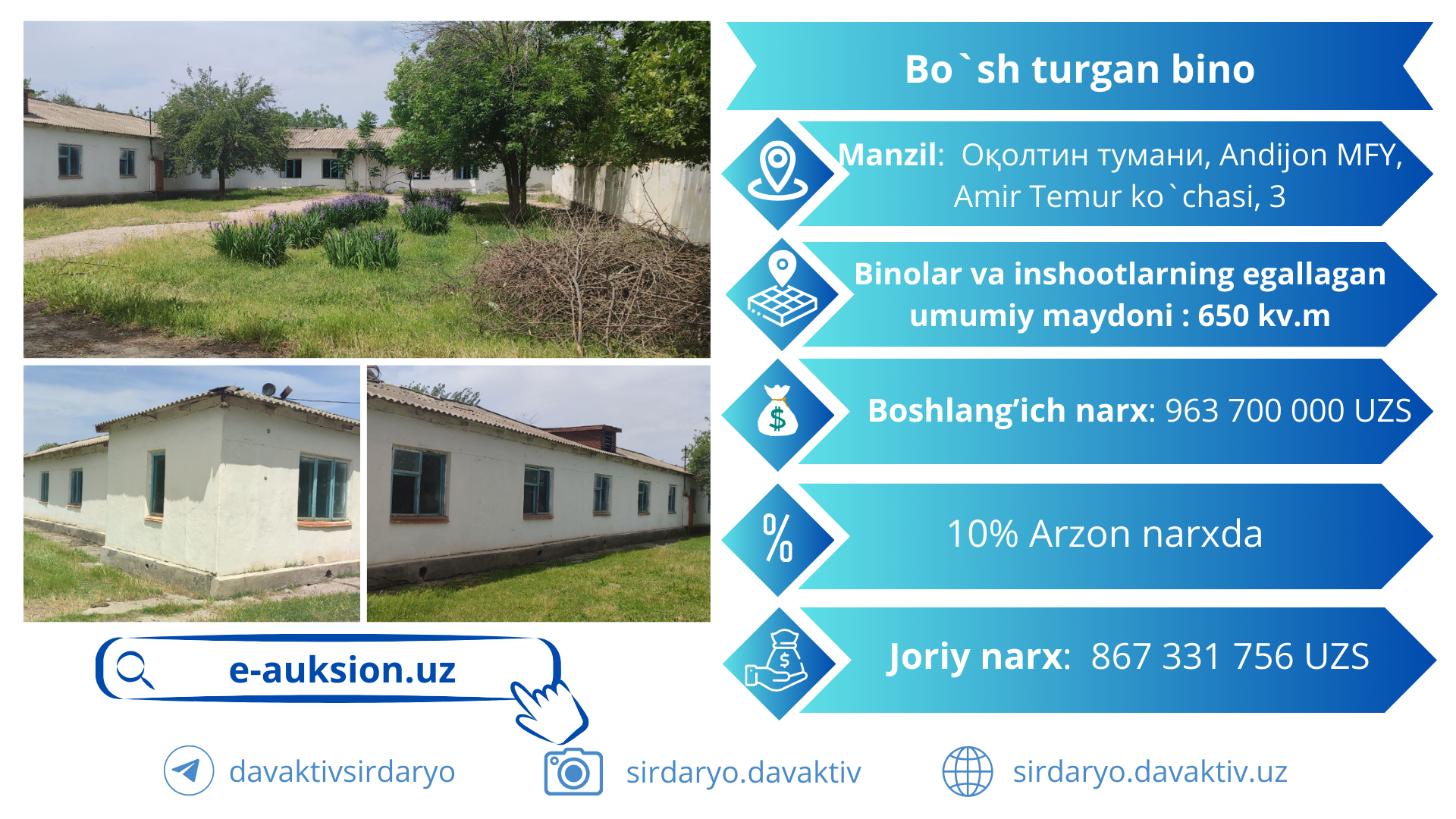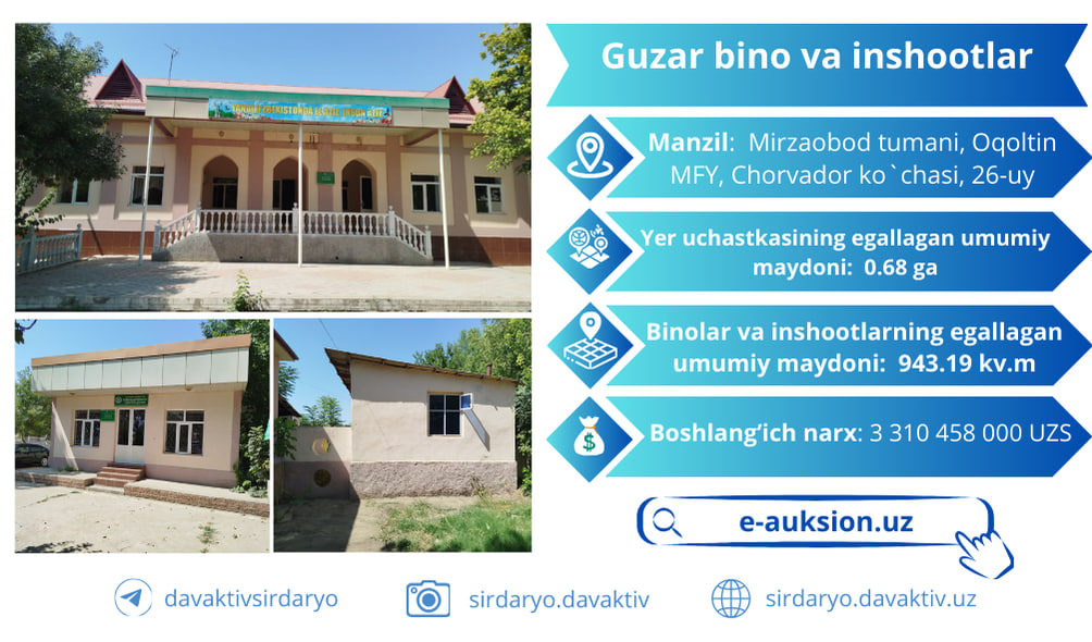 Sirdaryo viloyatidan 66 ta Davlat mulki obyektlari hamda aktivlarini "E-AUKSION"…