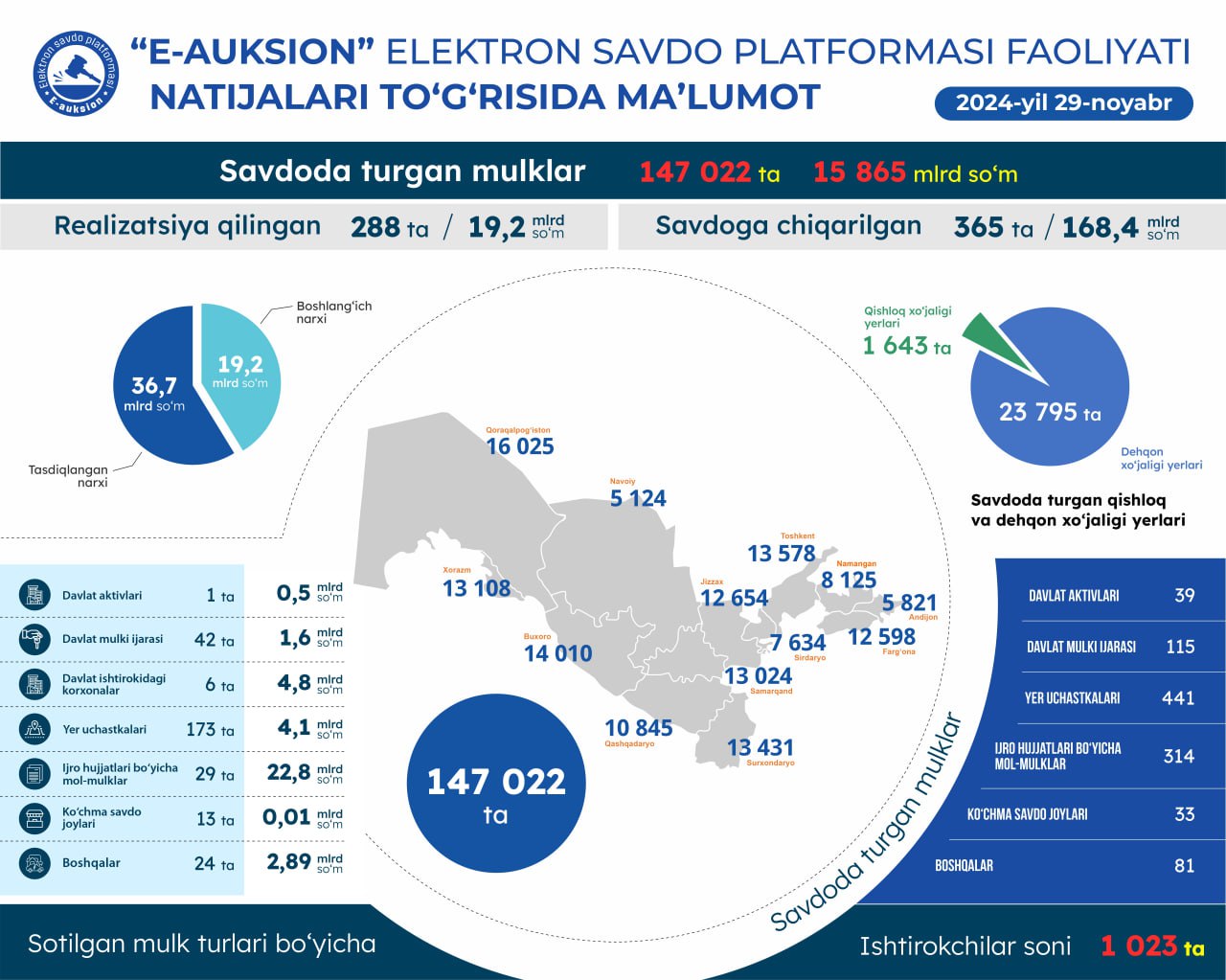 29-noyabr sanasida o'tkazilgan onlayn savdolar natijasi