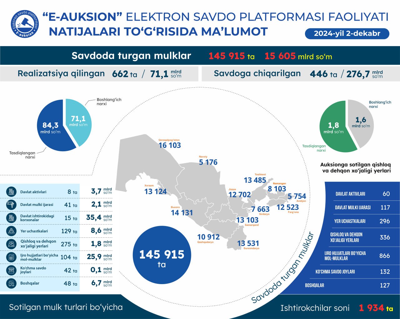 2-dekabr sanasida o'tkazilgan onlayn savdolar natijasi