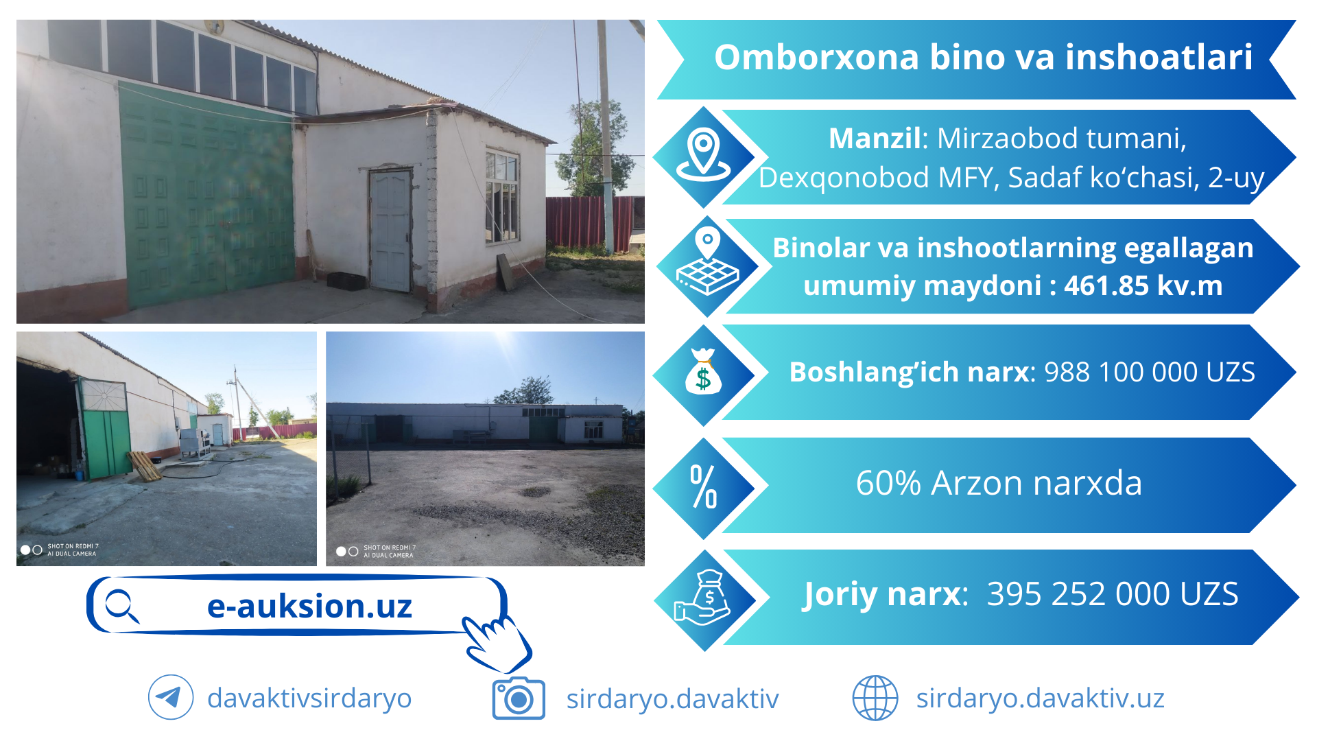 Sirdaryo viloyatidan 65 ta Davlat mulki obyektlari hamda aktivlarini "E-AUKSION"…