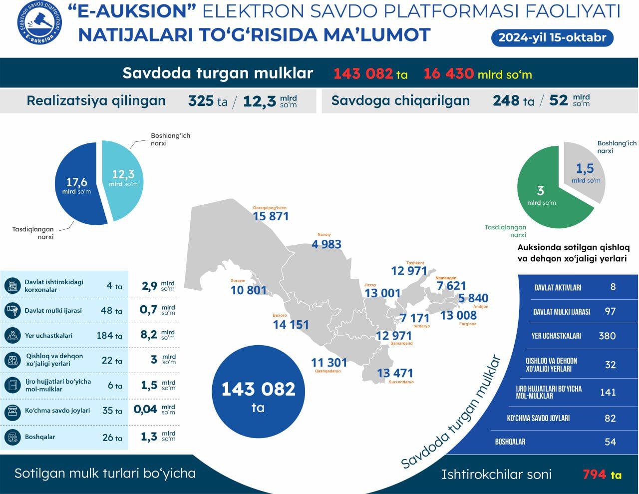 15-oktabr sanasida o'tkazilgan onlayn savdolar natijasi