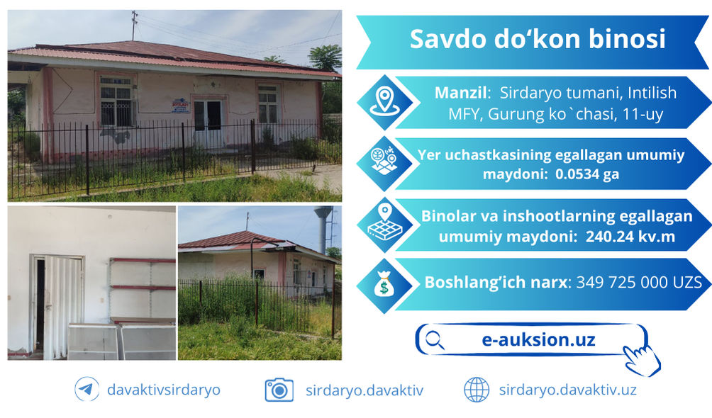 E-auksion.uz elektron savdo platformasi orqali Sirdaryo viloyatidan Biznes uch…