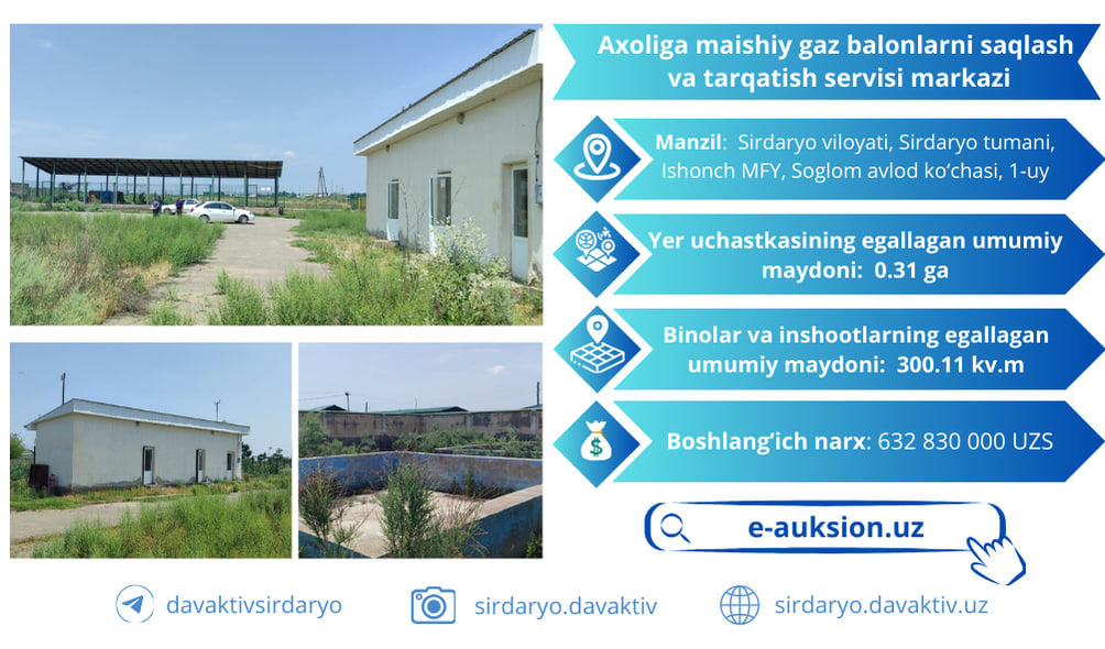 Bo'sh turgan suyultirilgan gaz tarqatish servis markazi binosini e-auksion platf…