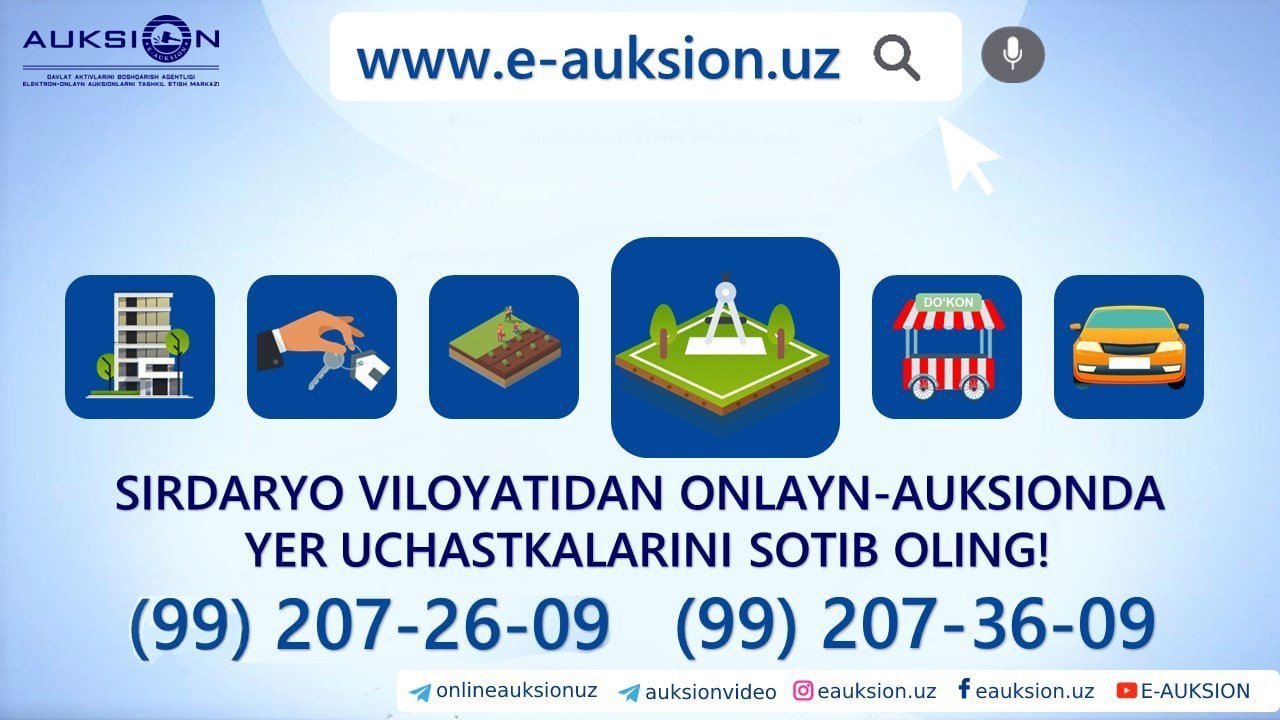 e-auksion.uz platformasi orqali Sirdaryo viloyati bo'yicha 3076 ta yer uchastkal…