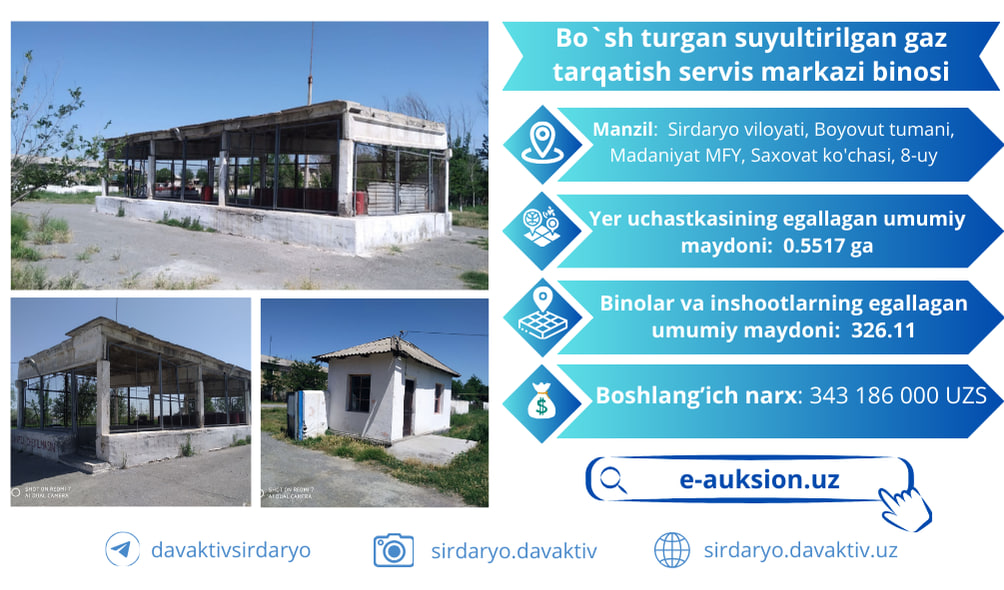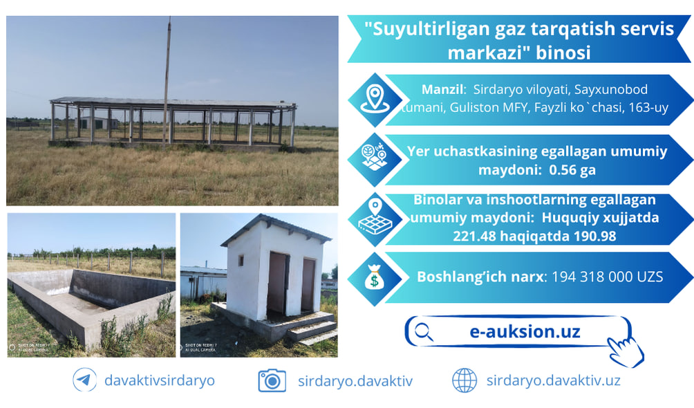 E-auksion da "Suyultirligan gaz tarqatish servis markazi" binosini 60 oy muddatl…