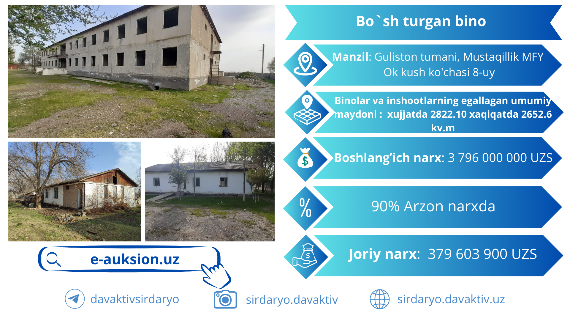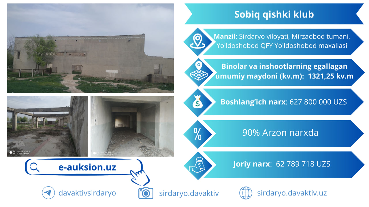 Bo`sh turgan suyultirilgan gaz tarqatish servis markazi binosini e-auksion da 60…