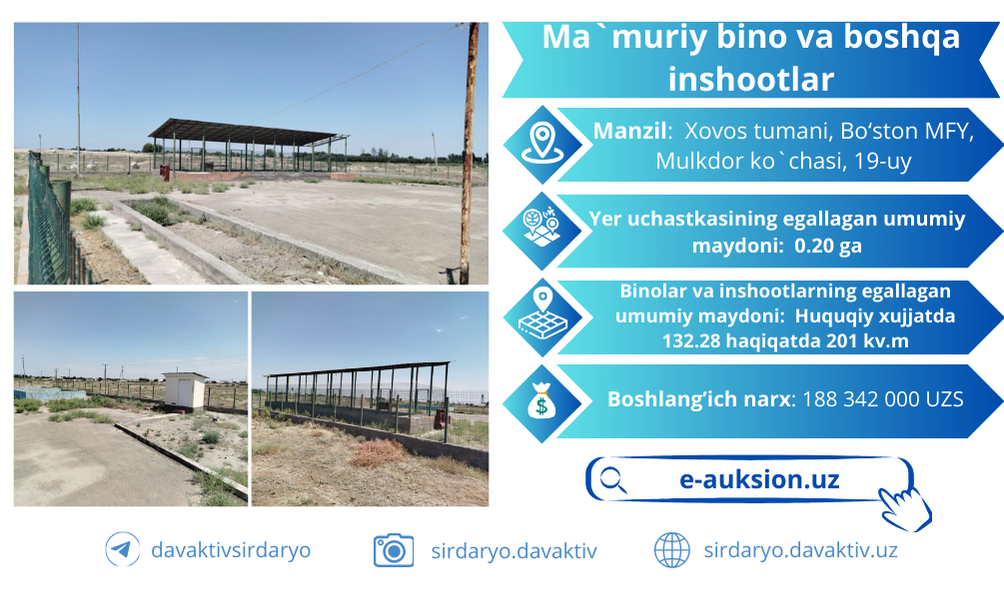 E-auksion da Ma'muriy bino va boshqa inshootlarni 60 oy muddatli to'lovga tanlov…