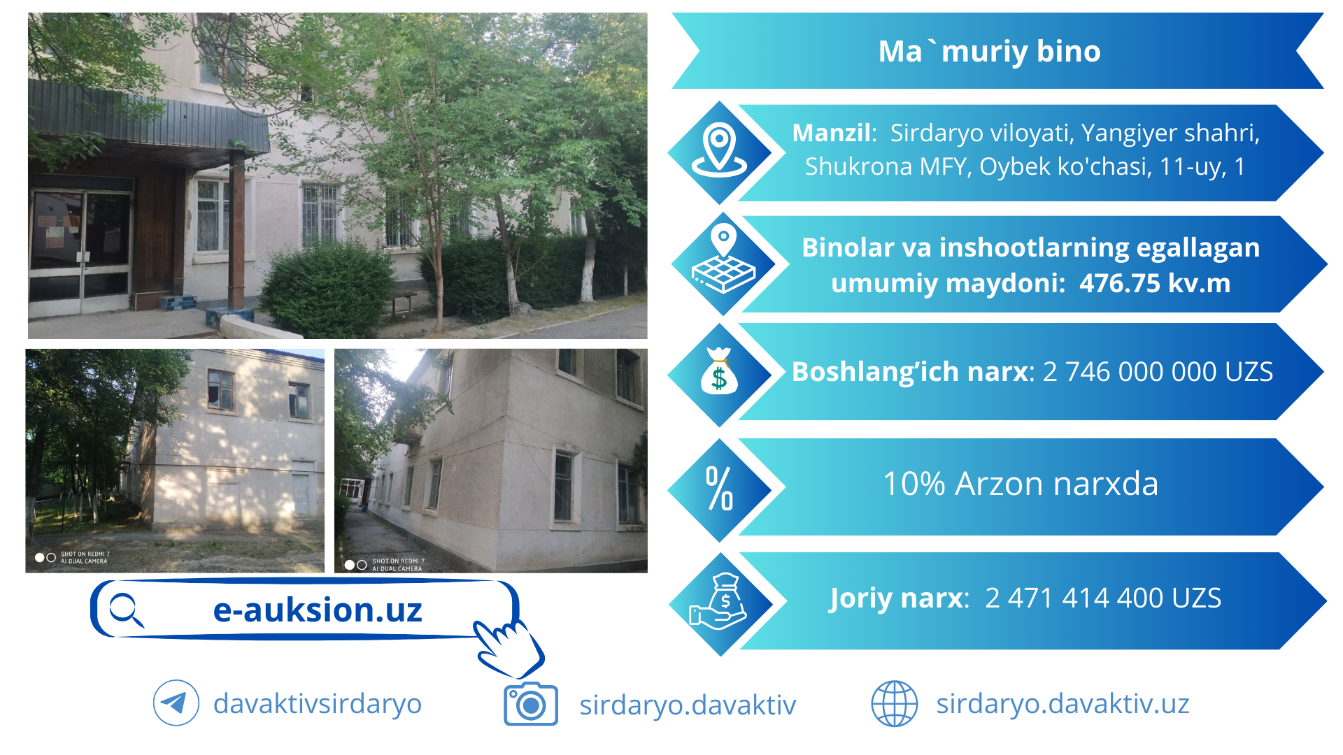 Ma'muriy binoni e-auksion da ajoyib narxda sotib oling!