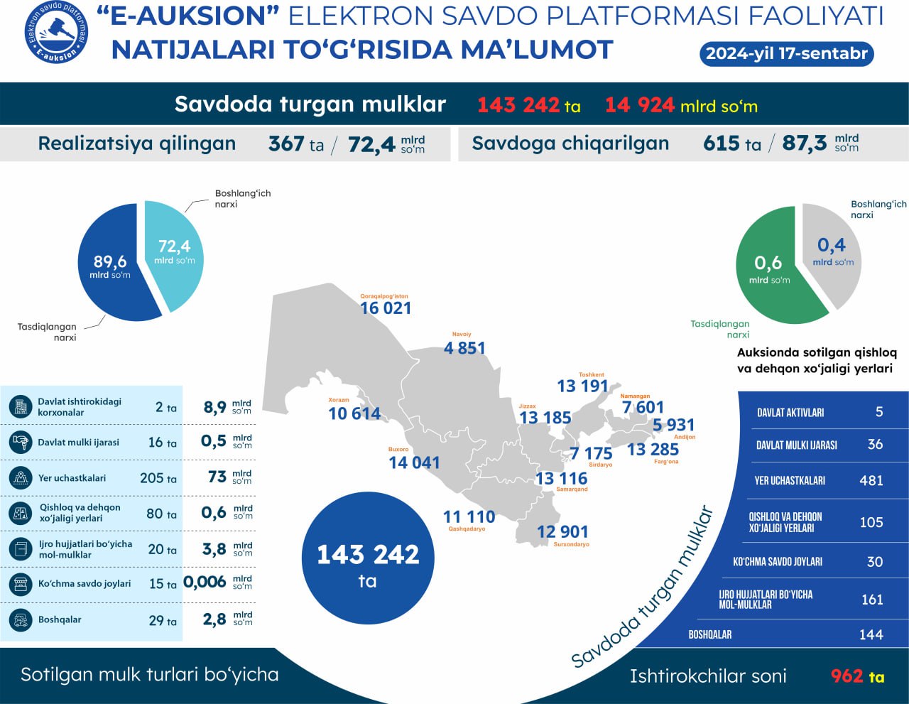 17-sentabr sanasida o'tkazilgan onlayn savdolar natijasi