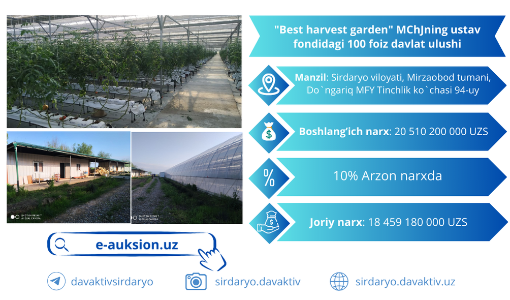 E-auksion da davlat aktivini ajoyib narxda sotib oling!