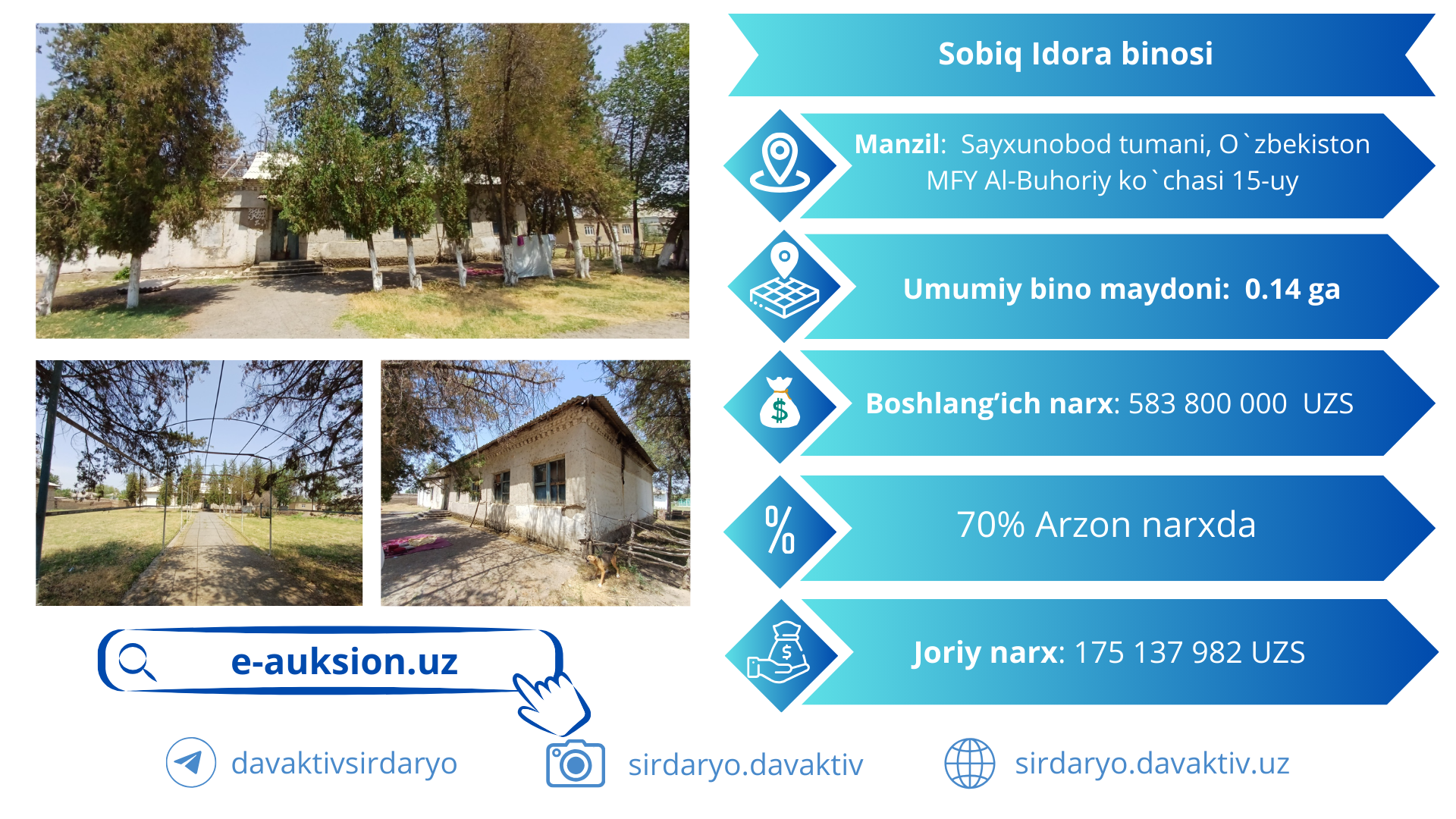 e-auksion.uz platformasi orqali Sirdaryo viloyatidagi 1334 dan ortiq koʼchma sav…