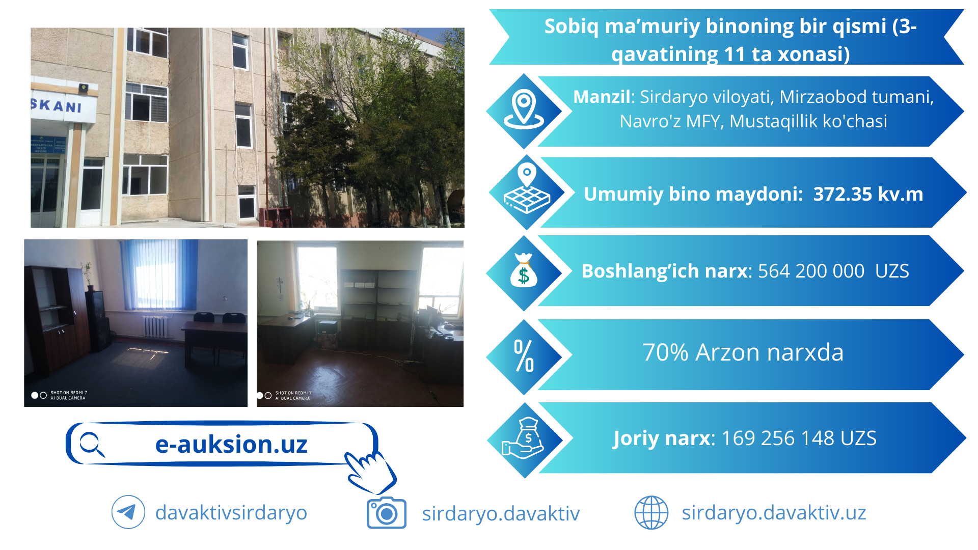 Sirdaryo viloyatidan 91 ta Davlat mulki obyektlari hamda aktivlarini "E-AUKSION"…