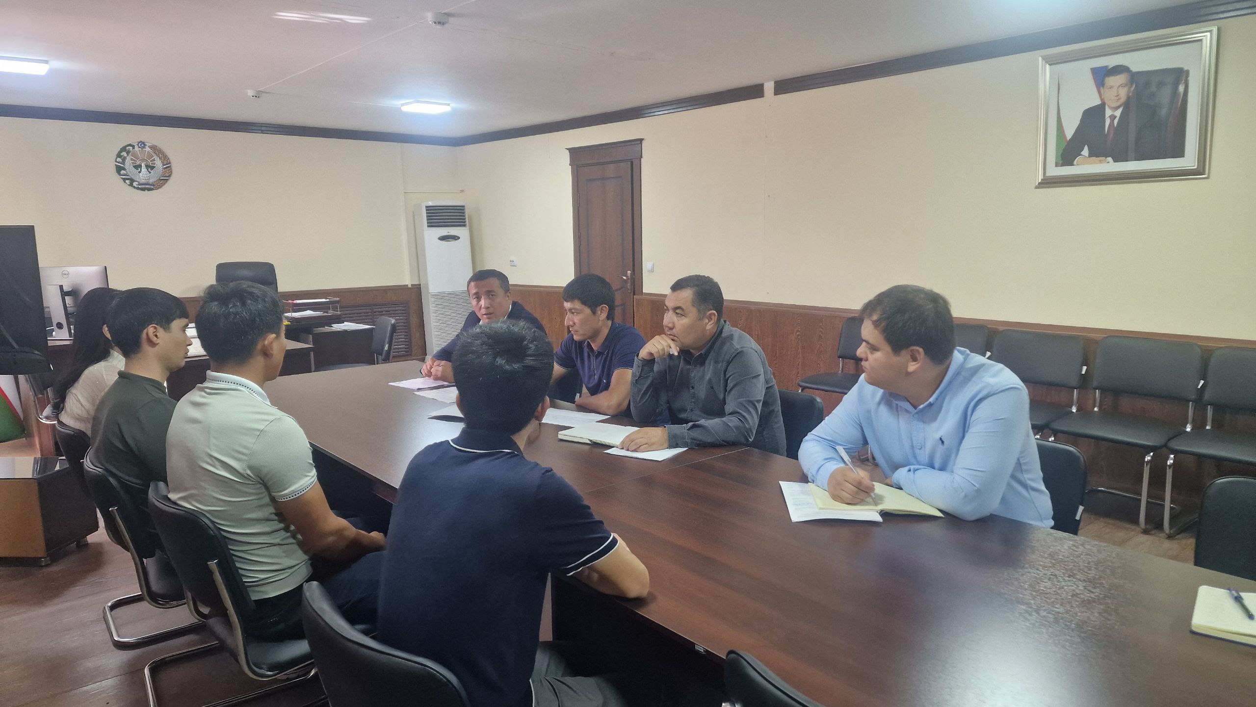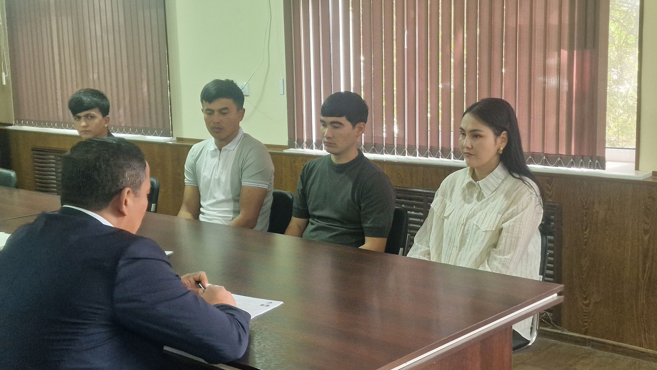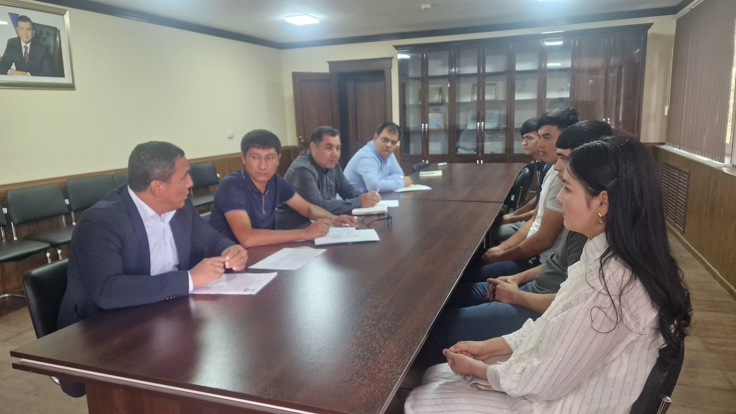 Ўзбекистон Республикаси Олий Мажлиси Сенати Кенгашининг 2025 йил 13-августдаги КҚ-220-В-сонли Қарори ижросини таъминлаш мақсадида Давлат активларини бошқариш агентлиги Сирдарё вилояти ҳудудий бошқармаси бошлиғи Комилжон Эрназаров битирувчиларни бандлигини таъминлаш бўйича ҳудудий бошқармада битирувчилар билан учрашув ўтказди.